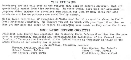During war times in the early 1900s tires were rationed. Since our funeral home in Gorman offered the only ambulance service, we were able to get new tires as needed. We ended ambulance service in 1979.